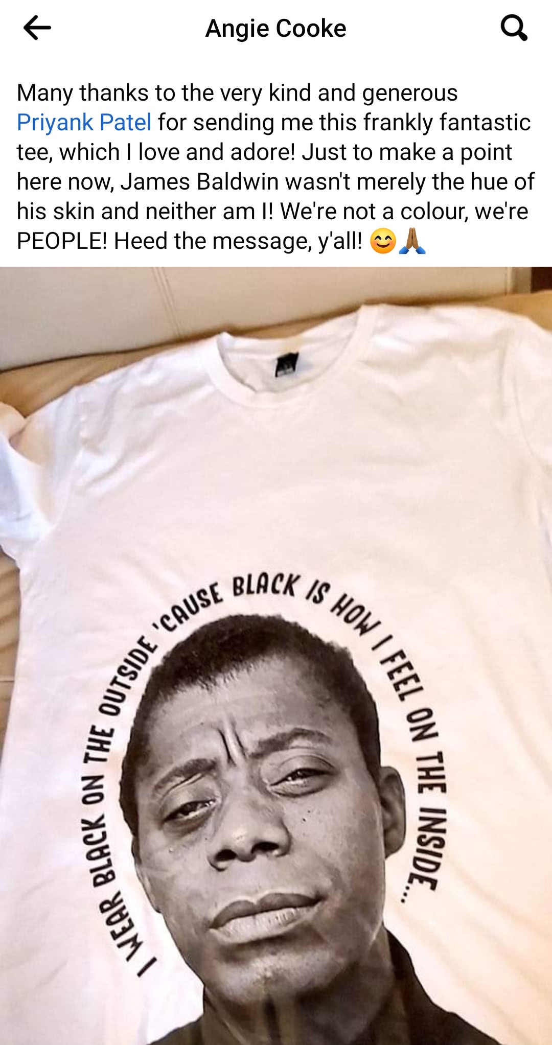 I was thrilled, delighted, honoured and privileged when one of my Social Media posts concerning a fantastic tee featuring James Baldwin, which was kindly sent to me by Priyank Patel (after its much needed resurrection was instigated by Stuart Kirk!), was shared by Morrissey on his website and Instagram account!